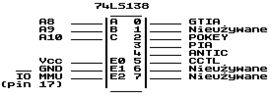 Z ANTIC'iem jest nieco inaczej, bo nie jest sterowany przez sygnał wyjściowy dekodera 74LS138 lecz sam w sobie ma dekoder "czuły" na adresy $D400-$D4FF.