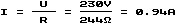 Nowe napięcie (Europejskie) to 230V. Liczymy jak poprzednio. Żarówka jest ta sama, więc i jej opór jest ten sam i wynosi 244