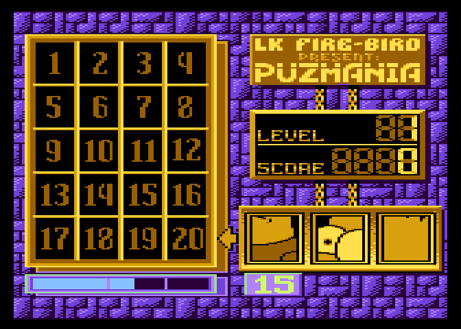 Poniżej, dla porównania, umieszczam screeny z wersji wydanej przez L.K. Firebird. Niestety, Żbik ("prezes" L.K. Firebird) nie zgodził się na umieszczenie tutaj pełnej wersji Puzmanii (rozmawiałem z nim już dość dawno, ale myślę że nie zmienił zdania na ten temat... a szkoda). W każdym razie, ten kto będzie chciał bez problemu znajdzie grę w sieci (mi to zajęło dosłownie kilka sekund) :)