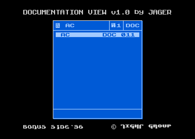 Prosty program służący do przeglądania plików ATASCII (jego późniejszą wersję można znaleźć w ostatnich wydaniach Serious Magazine - tych wydanych przez Zenka). Istnieje możliwość wczytania dowolnego zestawu znaków. Program dołączony był do packa Bonus Side'96.