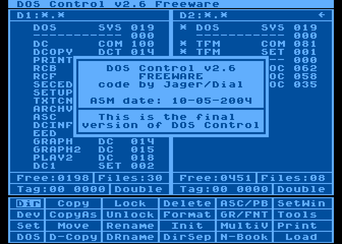 Na temat tego programu napisałem już tyle że teraz to już nie wiem co napisać :D Gneralnie jest to następca Tight File Manager'a. Jak widać po datach program był dość długo rozwijany. Do 2004 roku DOS Control był programem typu shareware, obecnie jest on już freeware. Zapraszam do działu DOS Control, w którym znajdziesz pełną dokumentacje, a także sam program.