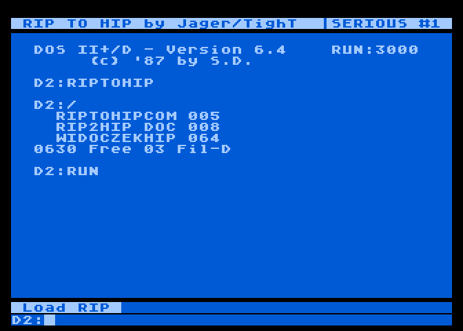 Jak nie trudno się domyśleć, jest konwenter umożliwiający przekształcenie obrazków w formacie RIP na HIP. Obecnie można go traktować raczej jako ciekawostkę, gdyż format RIP został już rozbudowany i dopracowany. Szczegóły na temat tego programu jak i samego formatu RIP (pierwsze wersje) znajdziesz w Serious Magazine #1.