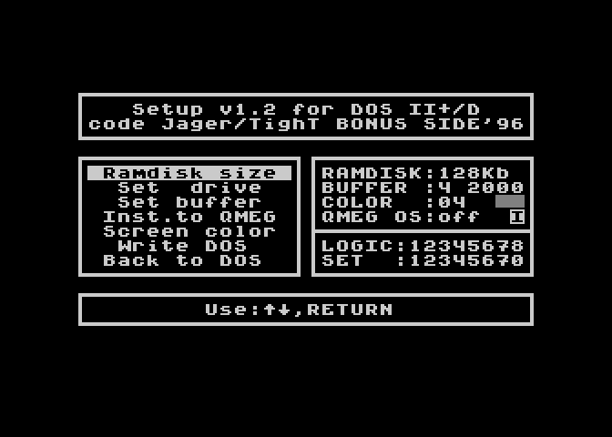 Jest to nakładka na DOS II+/D v6.1 lub 6.4 umożliwiająca współpracę z Ram-Cart'em oraz Ramdyskiem. Okazało się iż poprzednia wersja programu nie chciała poprawnie działać z RAM-Cart'em 128kB. Aby nie zwiększać objętości programu powstała druga wersja (1.1). Autorem poprawki jest Qcyk (ja miałem wtedy moduł 64Kb). Tak więc wersja 1.0 jest dla modułu o wielkości 64kB, a wersja 1.1 dla 128kB. Więcej na ten temat znajdziesz w Serious Magazine #5.